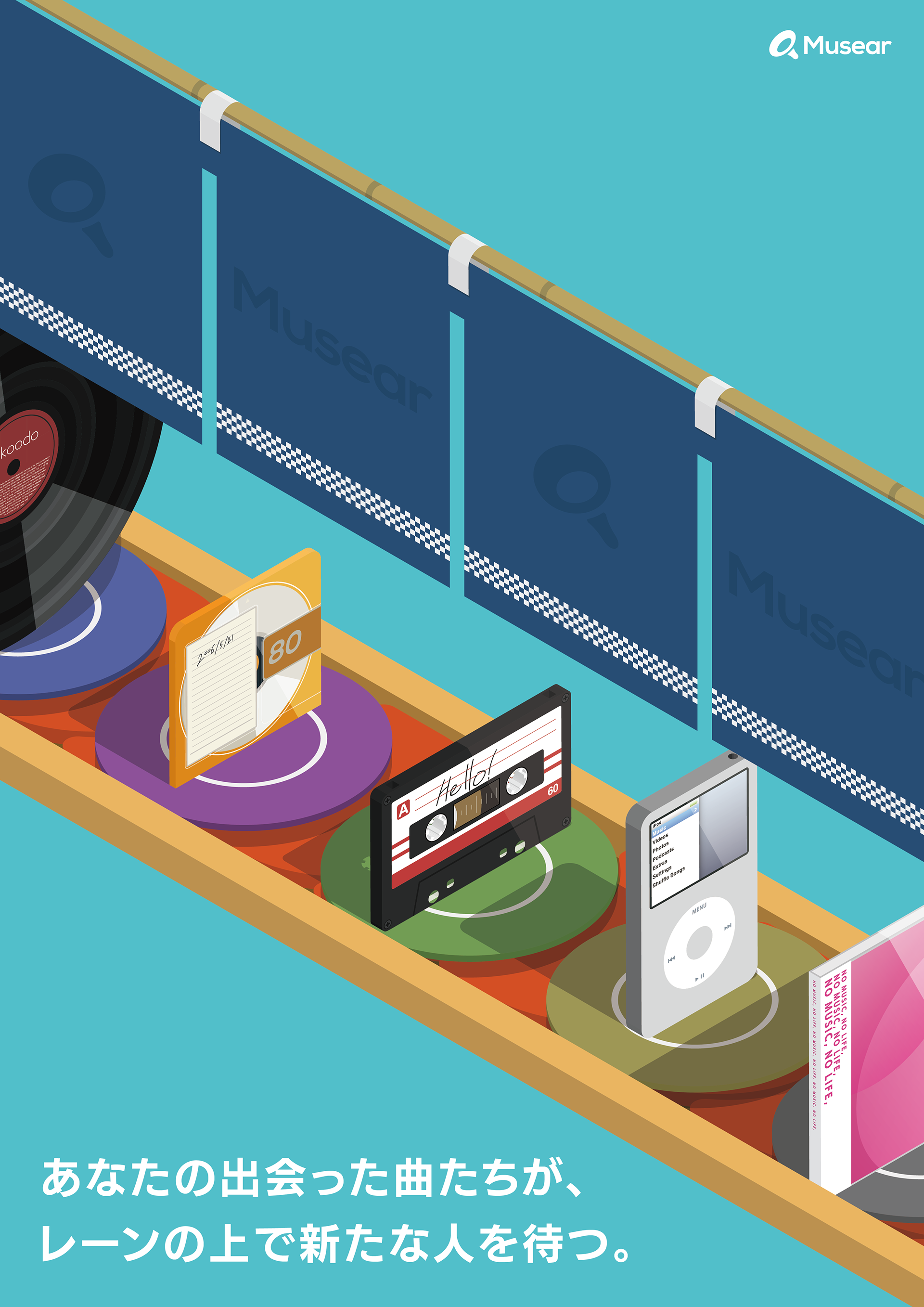 Musearは、今までの人生で聴いてきた音楽を年表のように並べて記録し、自分の”耳の博物館”として他の人に見て聴いてもらえる、架空の新しい音楽配信サービスです。
